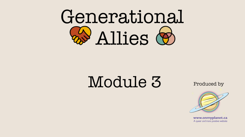There are five Generational Allies modules to choose from. Each module is based on in depth interviews with four older adult 2SLGBQTI+ storytellers. We have listed a bit about the people and the themes they discuss on each module page to help the facilitators to prepare for their sessions. We recommend watching the videos beforehand to better prepare for discussions and to customize the session for your particular group. Although we hope that your group will work your way through the entire series, each workshop was created as a stand alone session. So you can start anywhere. Host organizations should work with the facilitators and watch the module videos to find one that would be a good fit for their group and the themes they would like to explore.